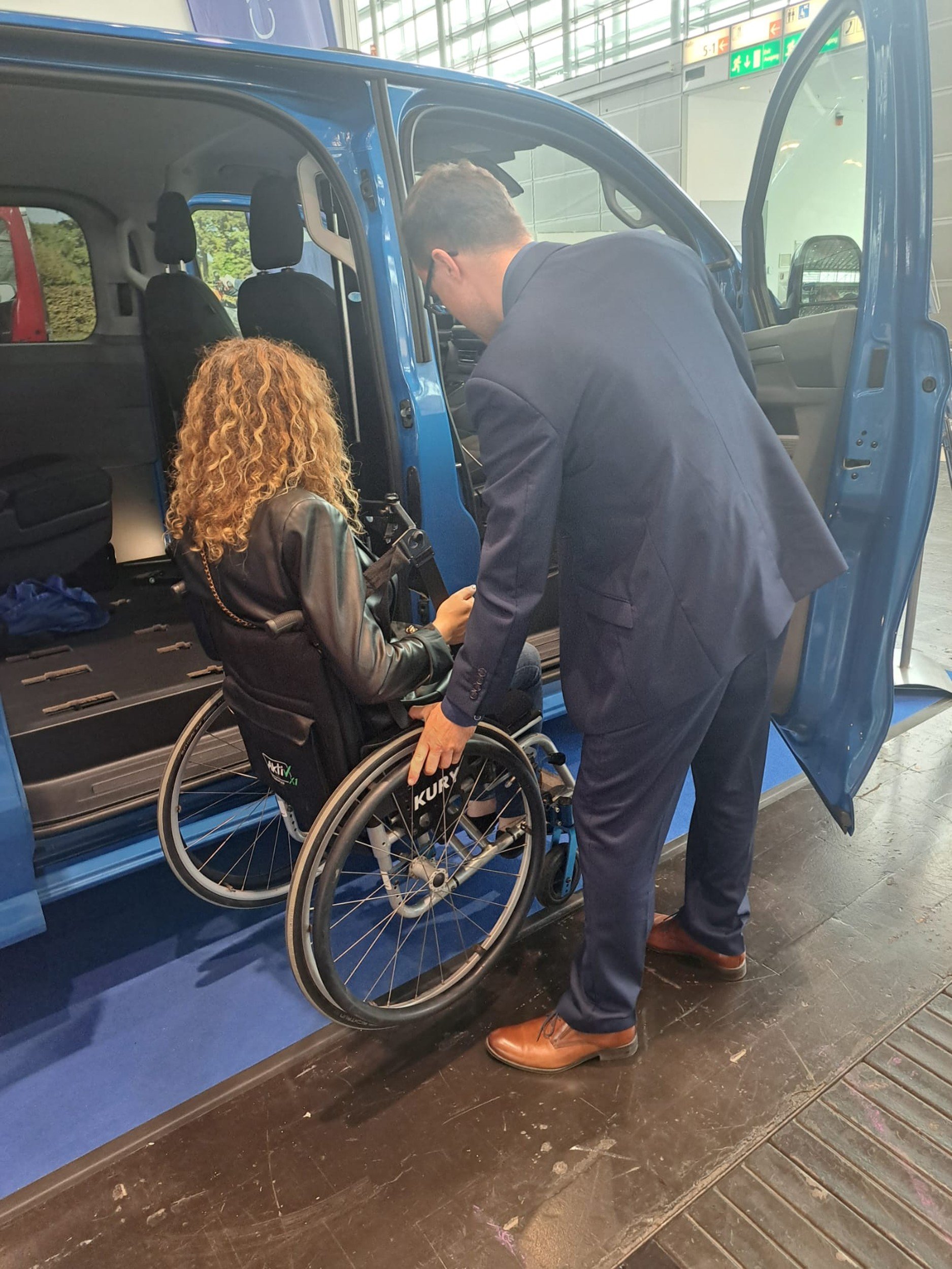 - Nově upravený VW Transporter T7 s jednou zajímavou novinkou – zvedákem osoby i s vozíkem. Jedná se zatím o prototyp, který budeme postupně vylepšovat tak, aby splňoval použitelnou nosnost a zaručoval přijatelnou bezpečnost.